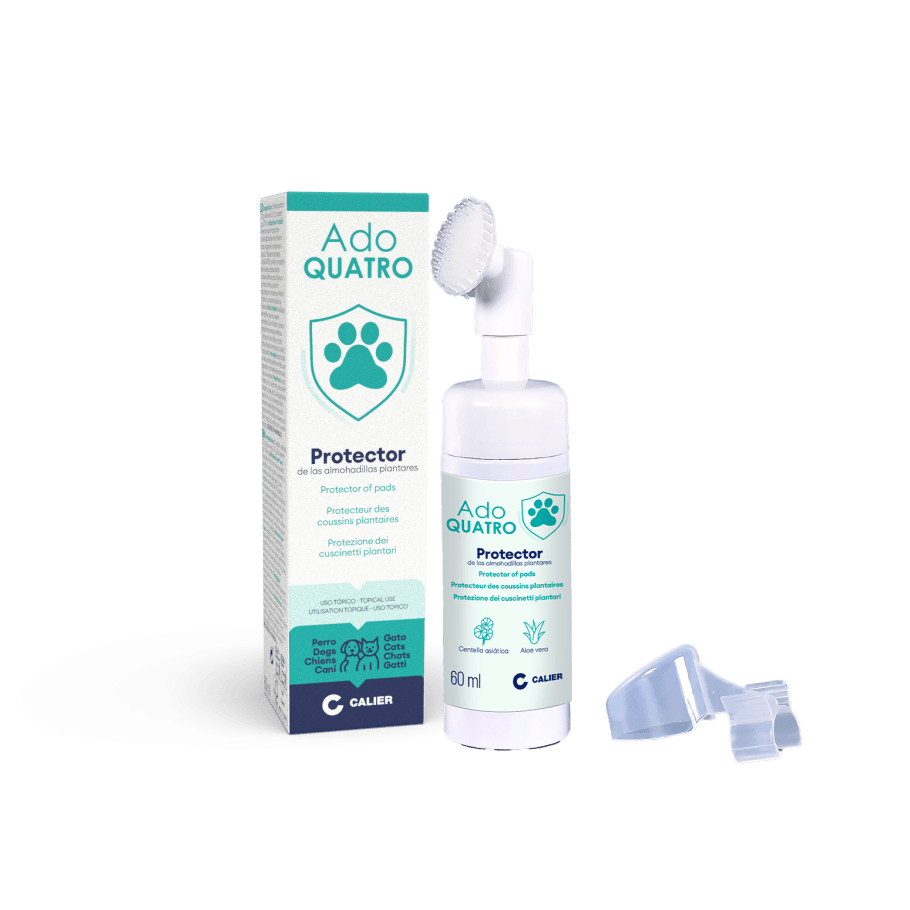 • AdoQUATRO de Calier previene la irritación y favorece la regeneración de almohadillas en perros y gatos